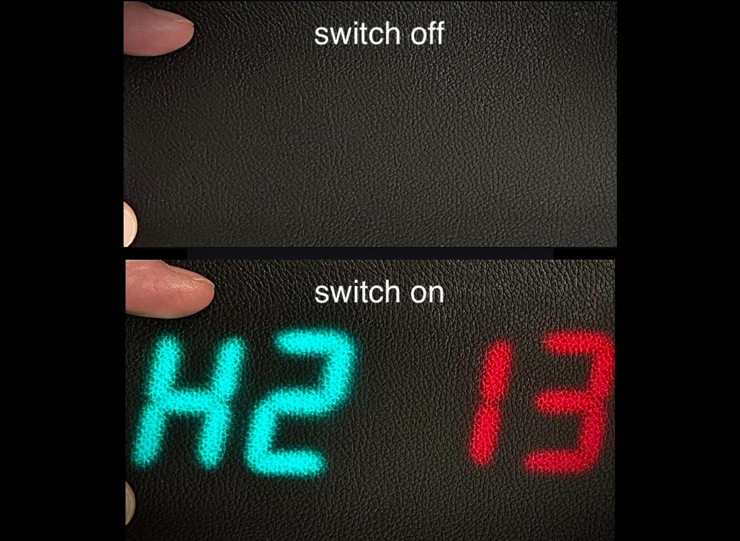 GhostMark can be custom-made in premium faux leather or fabric and features a soft, flexible light guide system with integrated LED technology. This innovative solution transforms seats and furniture into displays or ambient lighting, showcasing letters, numbers and symbols that magically appear on the surface. When inactive, the system remains completely invisible, seamlessly blending with any interior design style and offering new creative possibilities for designers and architects.